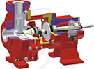 Las bombas se fabrican en 20 modelos con máxima intercambiabilidad y son adecuadas para un caudal de hasta 400 m3/h con una presión de 100 m de columna líquida.